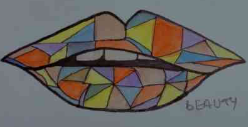 - lips could be represented as 2 triangles and 1 semicircle.