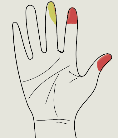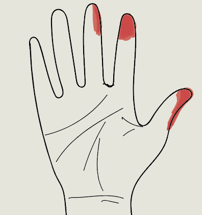We had to closely examine: how the objects that you are using are held, does it has a strong grip or has a gentle grip, where are they held from, what surface areas of our hand are in contact with the object directly, what areas have a firmer grip, which fingers are used more, what areas of your palm are more in contact with the object and what is in less use.